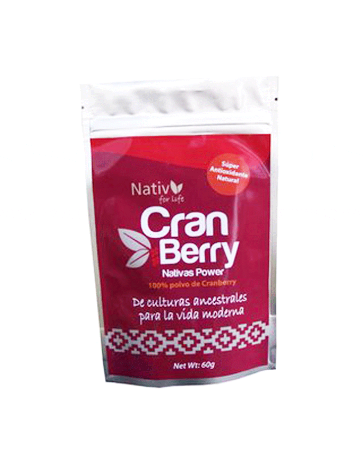 Polvo de Cranberry 100% natural. Este fruto presenta un alto nivel de vitamina C, previene y trata infecciones urinarias; aporta Antioxidantes. Envase contiene 30 porciones que equivale a 1 mes de ingesta.