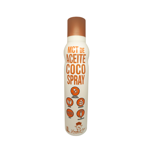 MCT de Aceite de coco en spray sin gases propelentes con tecnología BOV (bag on vale) que usa sólo aire comprimido sin uso de propelentes químicos.