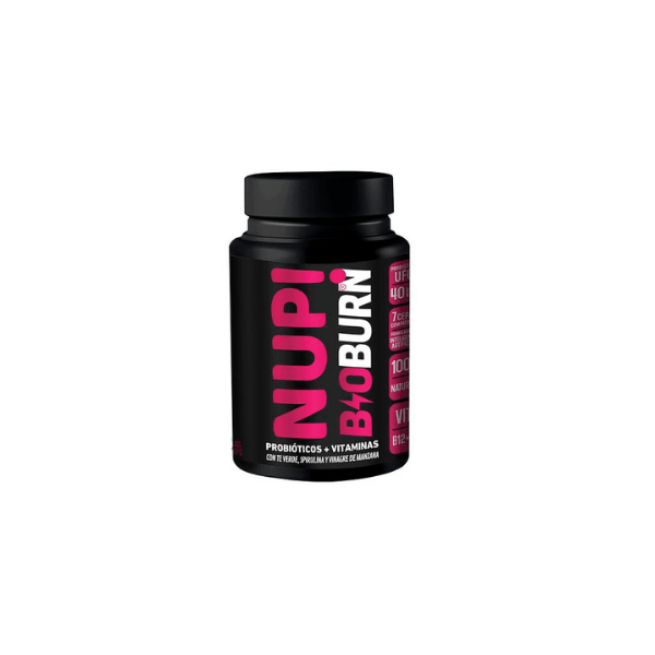 NUP!®BIOBURN es ideal para potenciar el metabolismo, rutina de ejercicios y ayudar a regular el estancamiento de peso. Con 40mil millones de probióticos + spirulina + vitamina D3 + Vitaminas B12 + Granada FD + Té verde + alcachofa liofilizada + vinagre de manzana + frambuesa FD + poroto blanco y lecitina de soya.